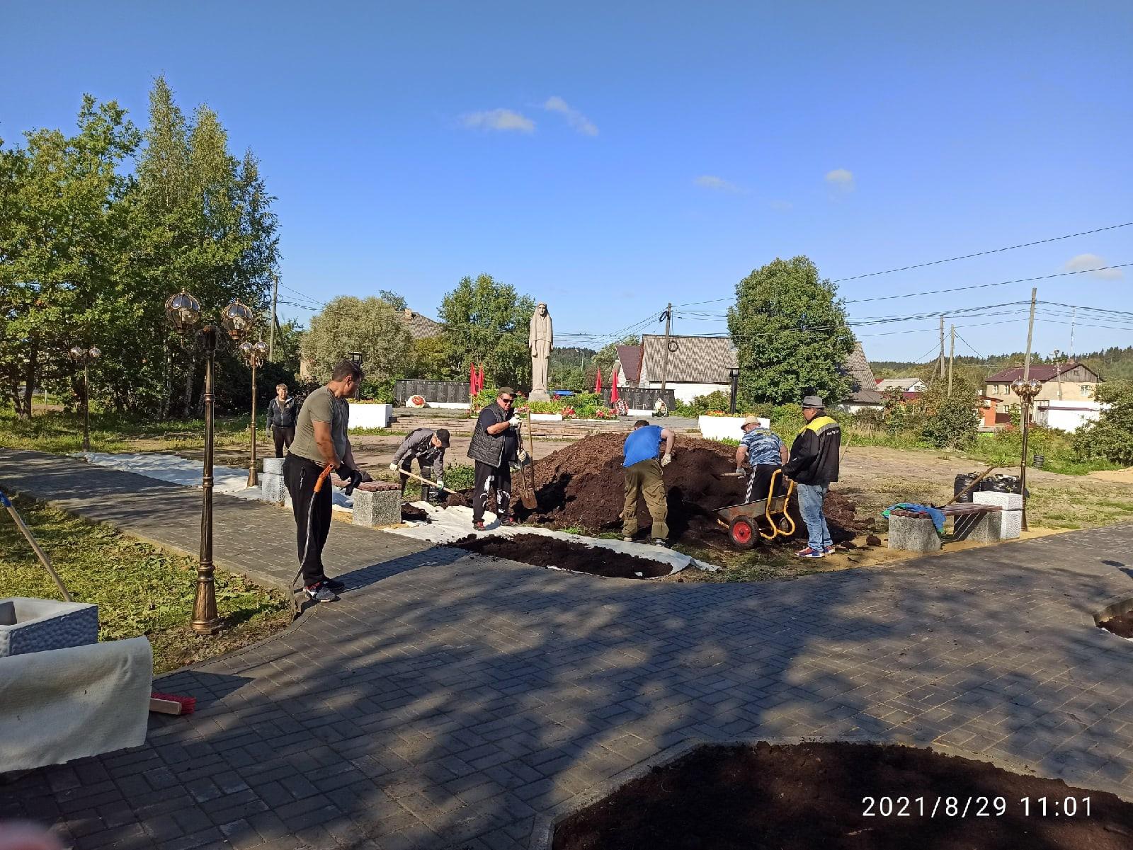 29 августа в посёлке Хелюля состоялся субботник по благоустройству территории сквера у мемориала «Скорбящая мать».