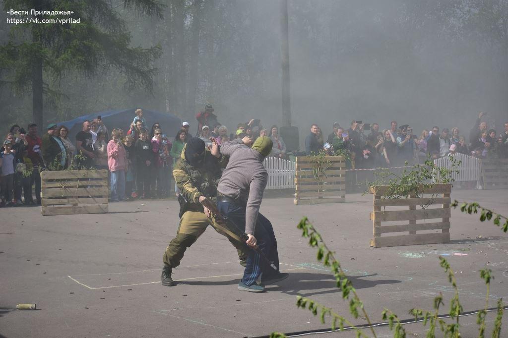 Самыми зрелищными на празднике стали показательные выступления. В этом году они были также разделены на два блока. В первом работала поисковая собака. Она обыскивала сумки на предмет обнаружения запрещённых к ввозу товаров и нашла спрятанный пакетик с веществом. Во втором блоке свой профессионализм показали военнослужащие. В сценарии, разыгранном у парковой сцены, воины-пограничники продемонстрировали навыки борьбы с вооружёнными террористами. Были тут и взрывы дымовых гранат, и рукопашная схватка. В итоге с помощью служебных собак все нарушители были обезврежены.