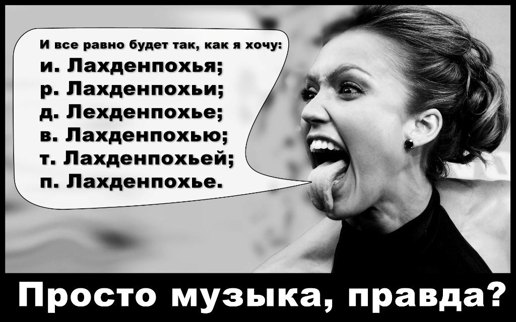Однако журналисты «Республики» продолжают «грамматическую интервенцию» и в своих публикациях склоняют названия Сортавала и Лахденпохья, «в Сорта-валу, из Сортавалы, в Лахденпохью, из Лахденпохьи», что, на наш взгляд, оскорбляет чувства и ущемляет права большинства жителей Лахденпохского и Сортавальского районов, не согласных с такой позицией редакции данного издания.
